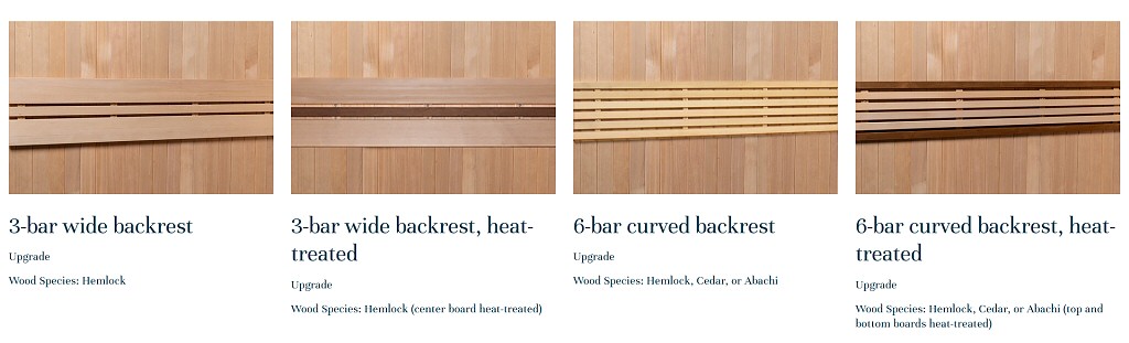 Exterior wood | Interior wall and bench wood | Backrest design