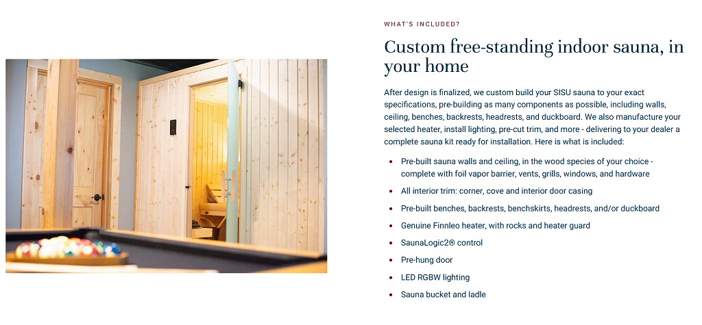 Our custom panel-built saunas, called Sisu, are a