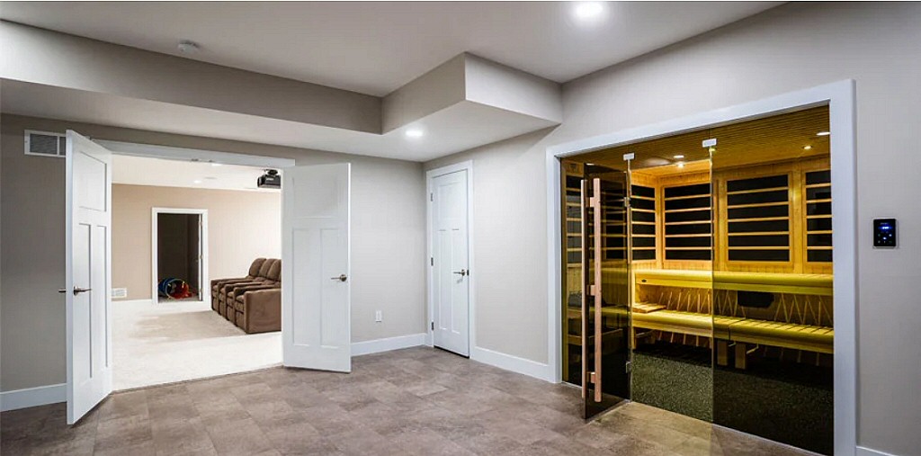 basement's Custom InfraSauna features Finnleo's patented CarbonFlex technology on