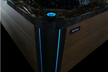 Four brilliant LED corner sconces wrap your Luxury spa model in warm light completing your evening relaxation experience.